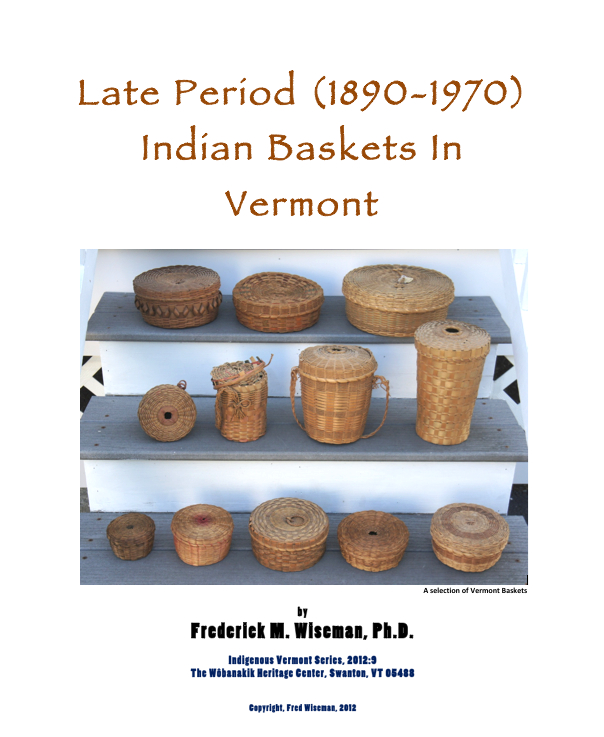 Probably the one craft that is universally recognized as giving Indian Identity is the ash splint basket. Although probably not made before the 18th century, Indigenous Vermonters, as well as other regional tribes became masters of the craft. Much of the early history of Indigenous Vermont Baskets are to be found in other Haven publications.”